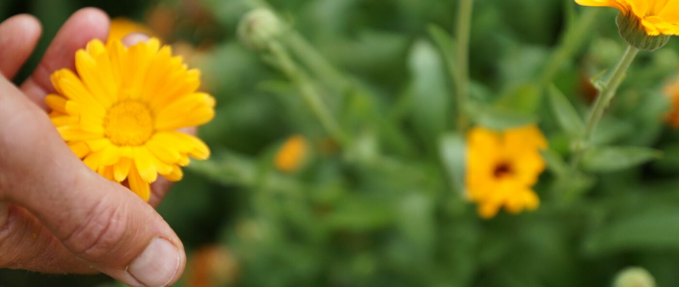 Notre gamme est élaborée principalement à partir de racines fraiches de consoude officinale, mais aussi de plantes et de fleurs, telle que : le Calendula, l’Hélichryse, le Basilic sacré, le Géranium Rosat ainsi que la Rose de Damas. Toutes proviennent directement de nos champs, cultivées à partir de nos propres boutures et semences, au sein de notre ferme horticole à Caden, dans le Morbihan, entre Vannes et Redon.